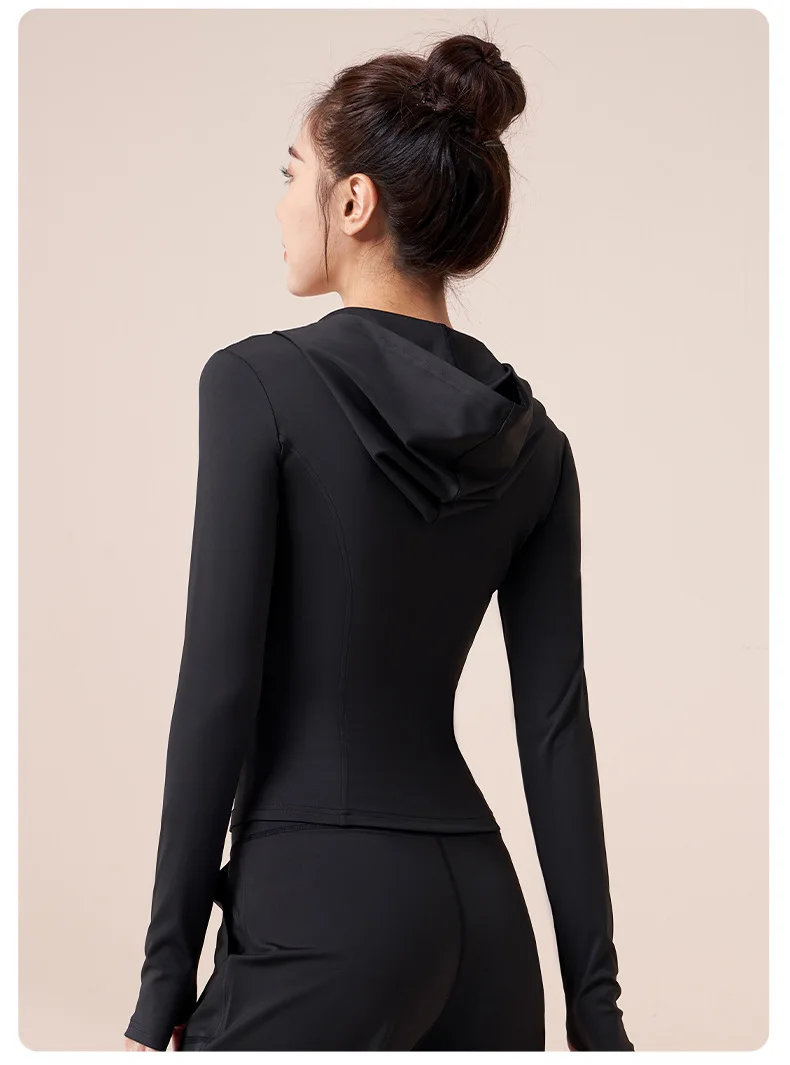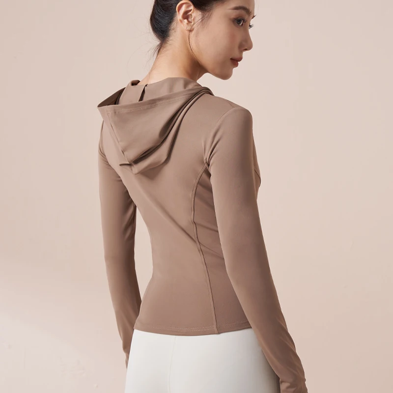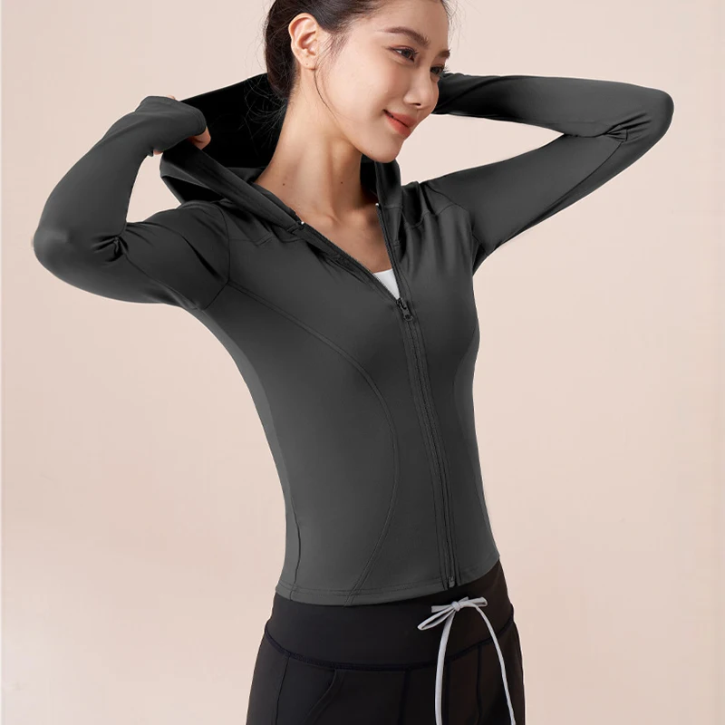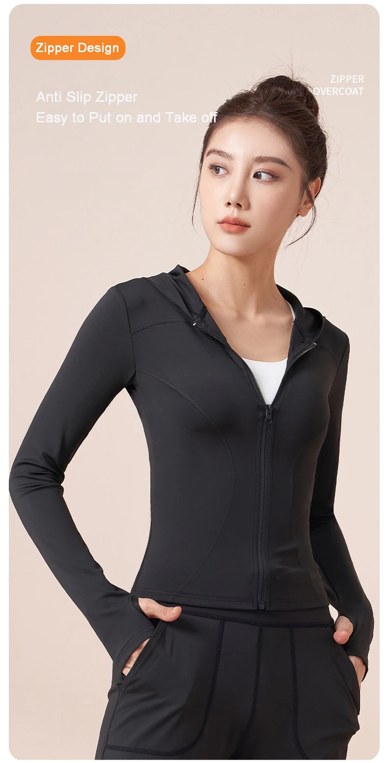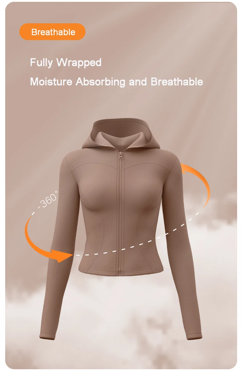 Women Running Hooded Jacket Gym Training Wear Zipper Fitness Sports Top Breathable Workout Coat Casual Yoga Clothing Activewear