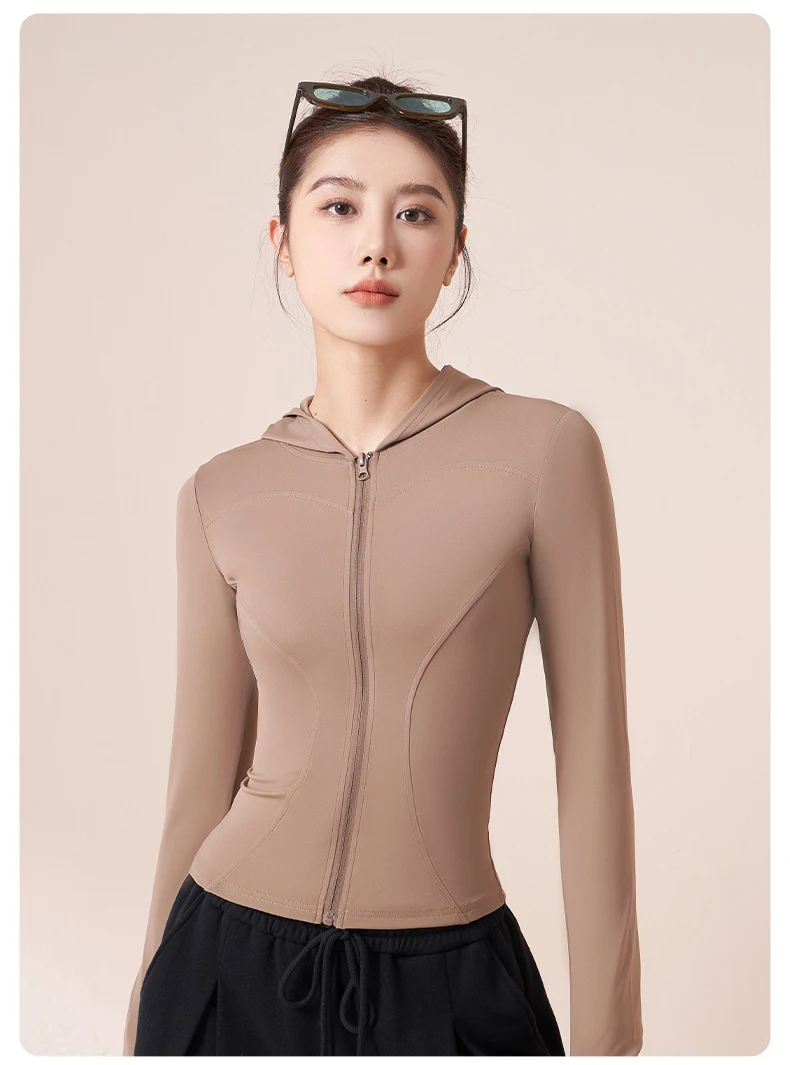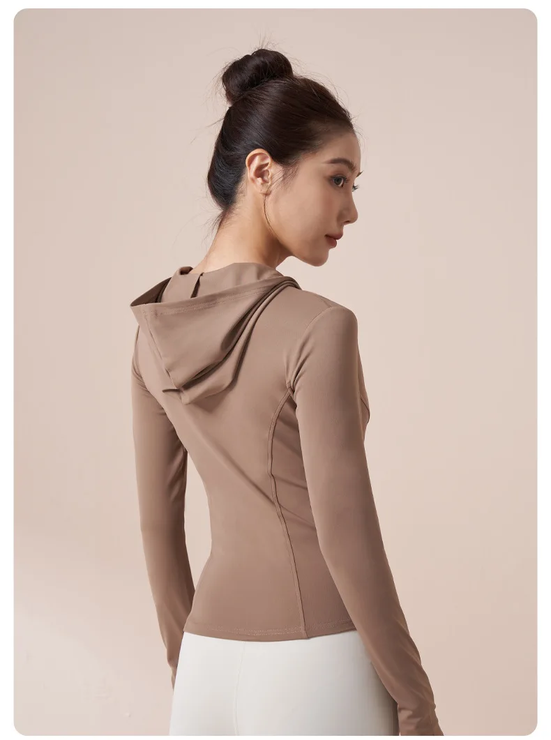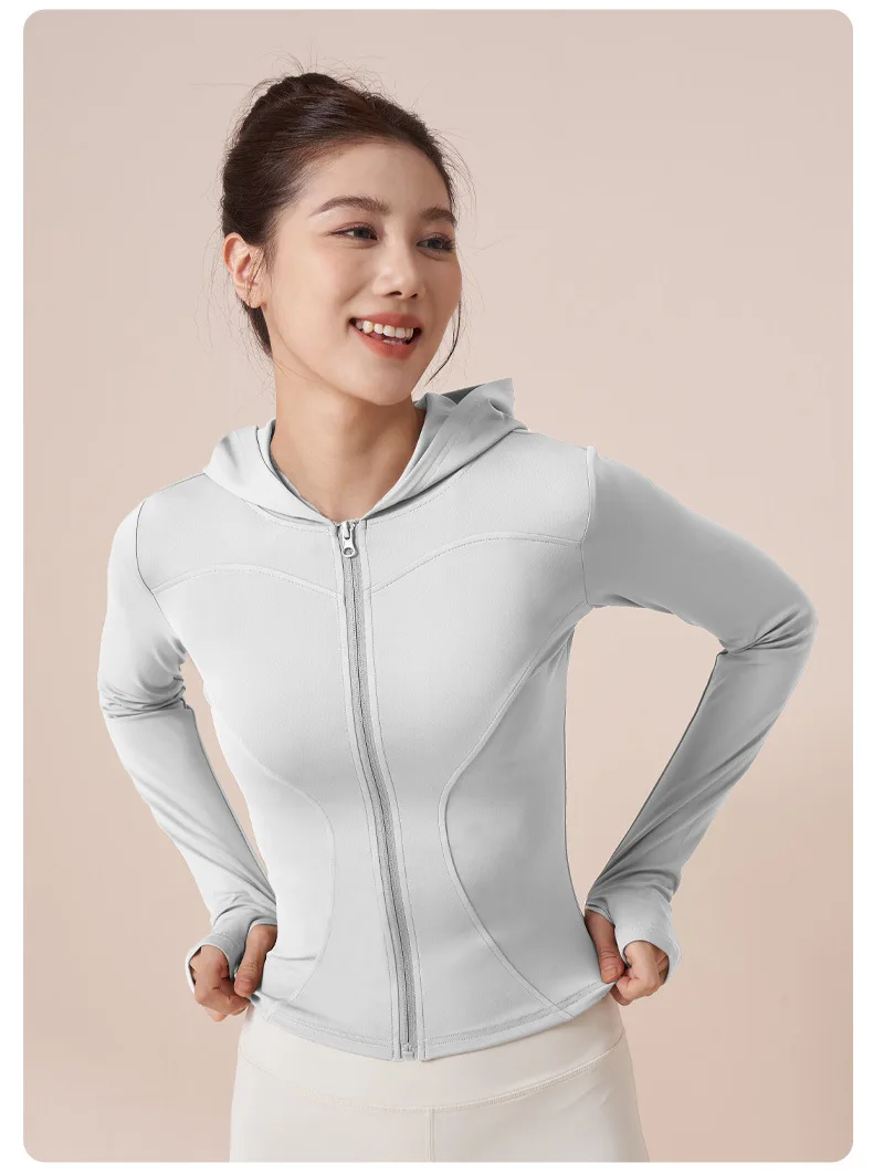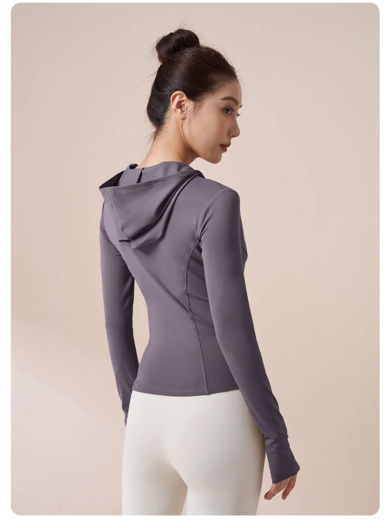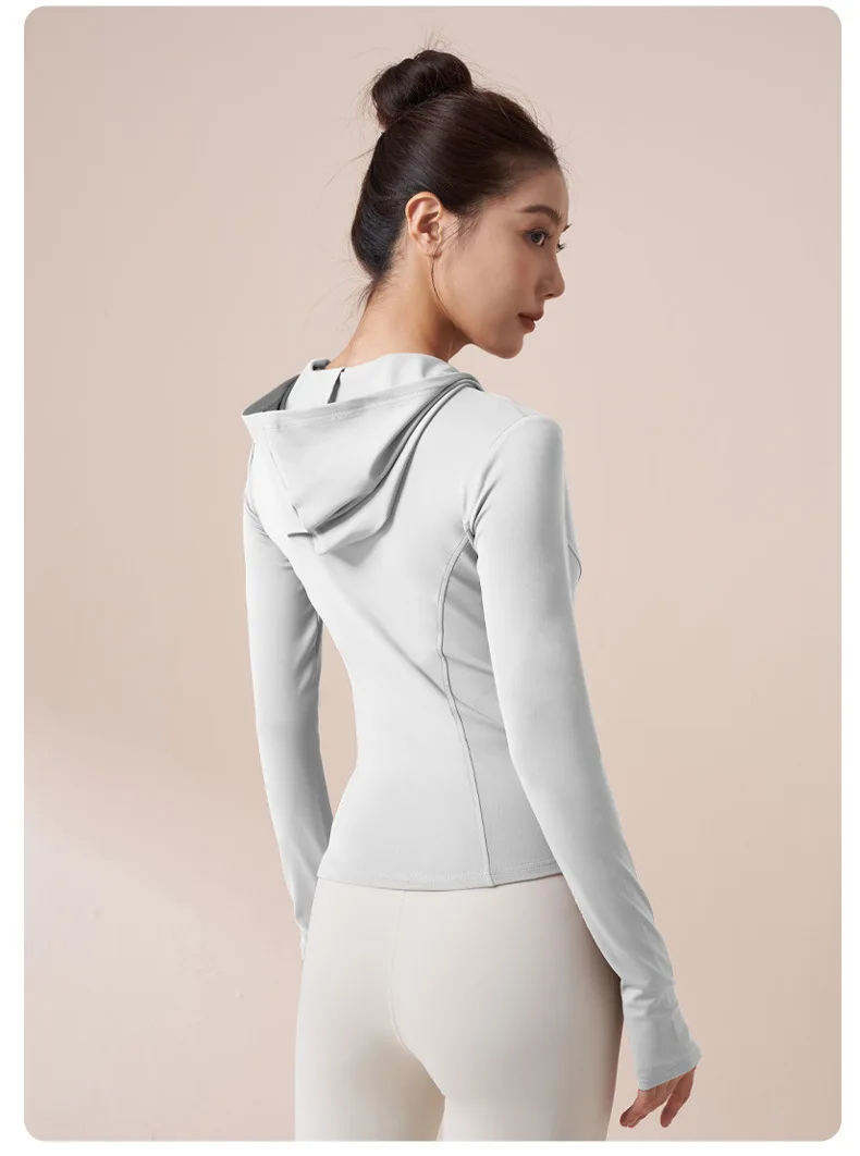Women Running Hooded Jacket Gym Training Wear Zipper Fitness Sports Top Breathable Workout Coat Casual Yoga Clothing Activewear